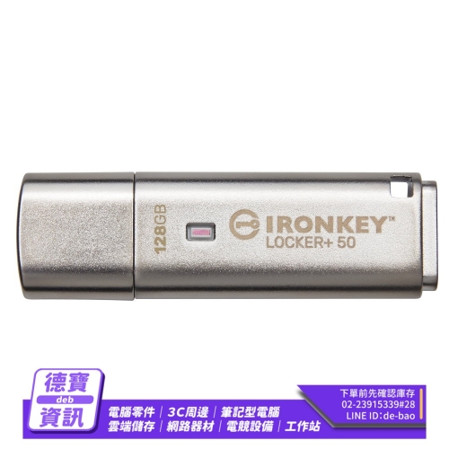 金士頓 IronKey Locker+ 50 128G USB3.2 加密隨身碟 IKLP50/128GB/051723