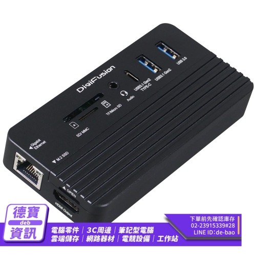 支援NVMe/NGFF雙規格 USB3.1 Gen2 外接盒 具備 USB Hub/HDMI 具備 RJ-45/讀卡機 具備PD/耳機+麥克風音源孔