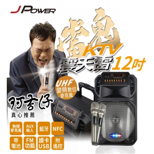 JPOWER 杰強 震天雷12吋雷鬼-拉桿式行動KTV藍牙音響