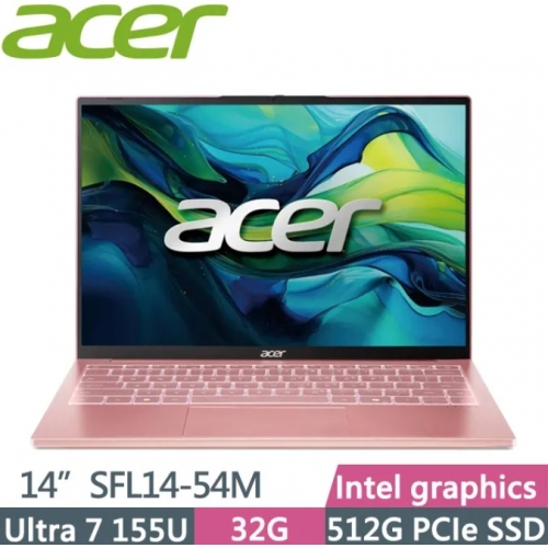 ACER 宏碁Swift Lite SFL14-54M-73E9 幻境粉(Ultra 7 155U/32G/512G SSD/14吋WUXGA/W11)AI效能筆電