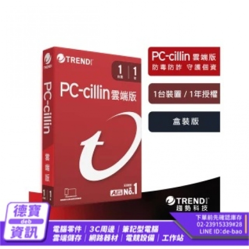 [盒裝]PC-cillin雲端版 一年一台防護2026/020426