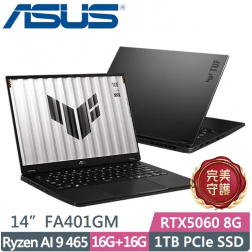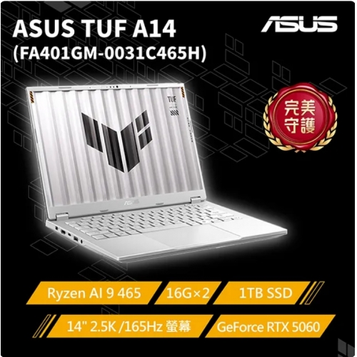 ASUS 華碩TUF Gaming A14 FA401GM-0021A465H(Ryzen AI 9 465/16G+16G/1TB/RTX5060 8G/14吋2.5K/W11)電競筆電