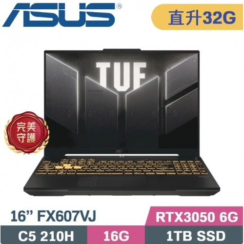 ASUS 華碩TUF F16 FX607VJ-0033A210H 機甲灰(Core 5 210H/16G+16G/1TB SSD/RTX3050 6G/W11/16)特仕