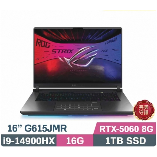 ASUS 華碩 16吋 GeForce RTX 5060 i9電競筆電(G615JMR-0021G14900HX-NBL/i9-14900HX/16G/1TB)