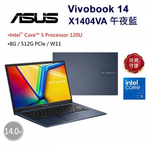 ASUS 華碩Vivobook 14 14吋效能筆電藍色(Intel Core 5 120U/8GB/512GB/WIN11/X1404VA-0111B120U)