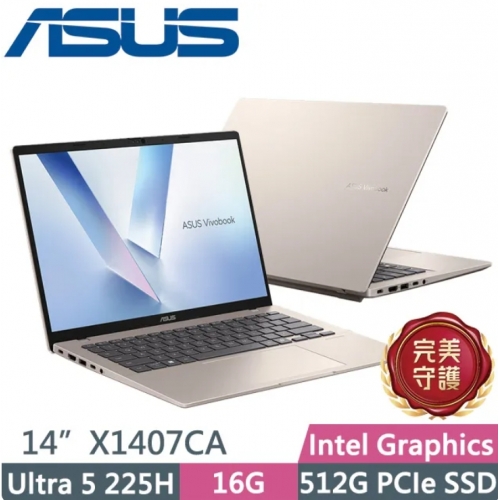 ASUS 華碩Vivobook 14 X1407CA-0051D225H 鉑金色(Ultra 5 225H/16G/512G/14吋WUXGA/W11)AI效能筆電
