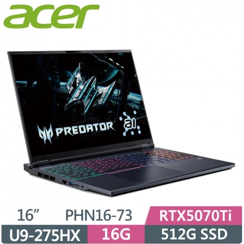 ACER 宏碁Predator PHN16-73-965Q 16吋 電競筆電 黑(Ultra9 275HX/16G/512G SSD/RTX5070Ti/W11)