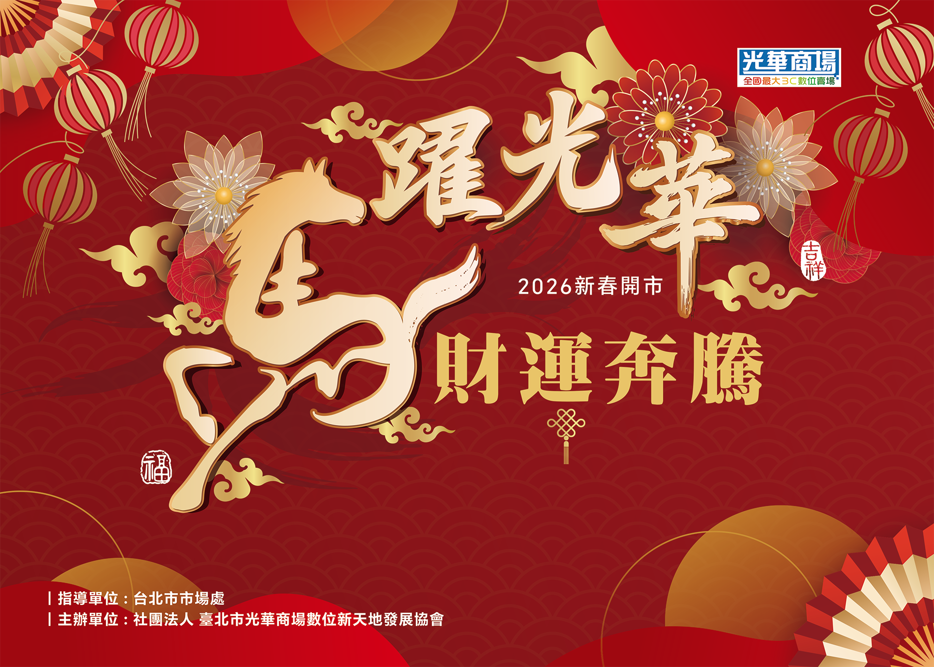 為迎接 2026 馬年新春,光華數位新天地於農曆大年初五舉辦新春開市活動,以「馬躍光華・財運奔騰」為主題