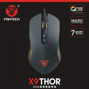 FANTECH X9 RGB燈效專業電競遊戲滑鼠 四檔變速/4800dpi分辨率/7個自定按鍵/RGB燈效