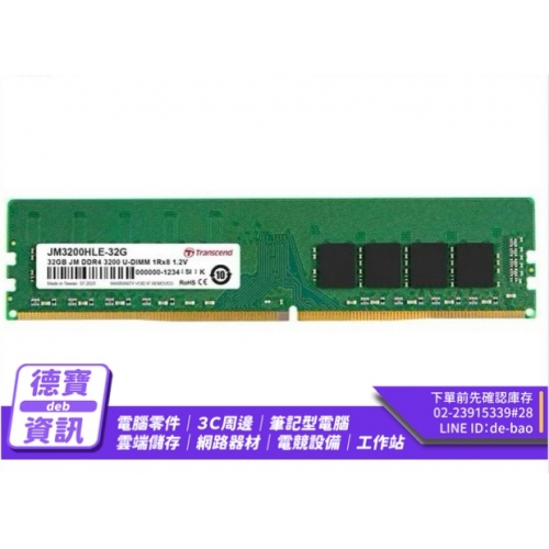 - 創見JM3200HLE-32G DDR4 3200桌上型記憶體(終身保固)/090420