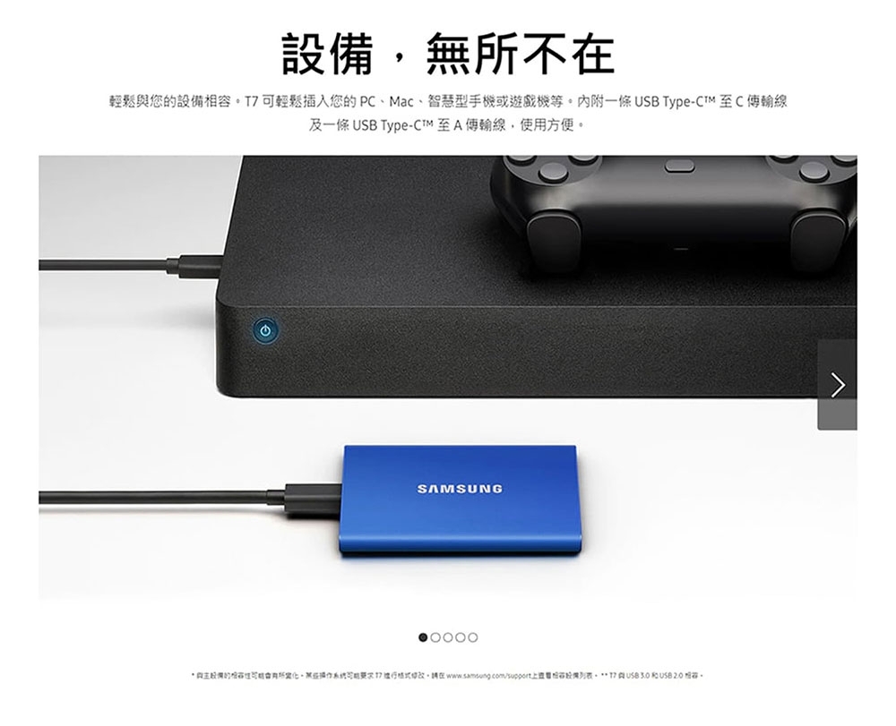 SAMSUNG 三星T7 4TB USB 3.2 Gen 2移動固態硬碟 深空灰/092125
