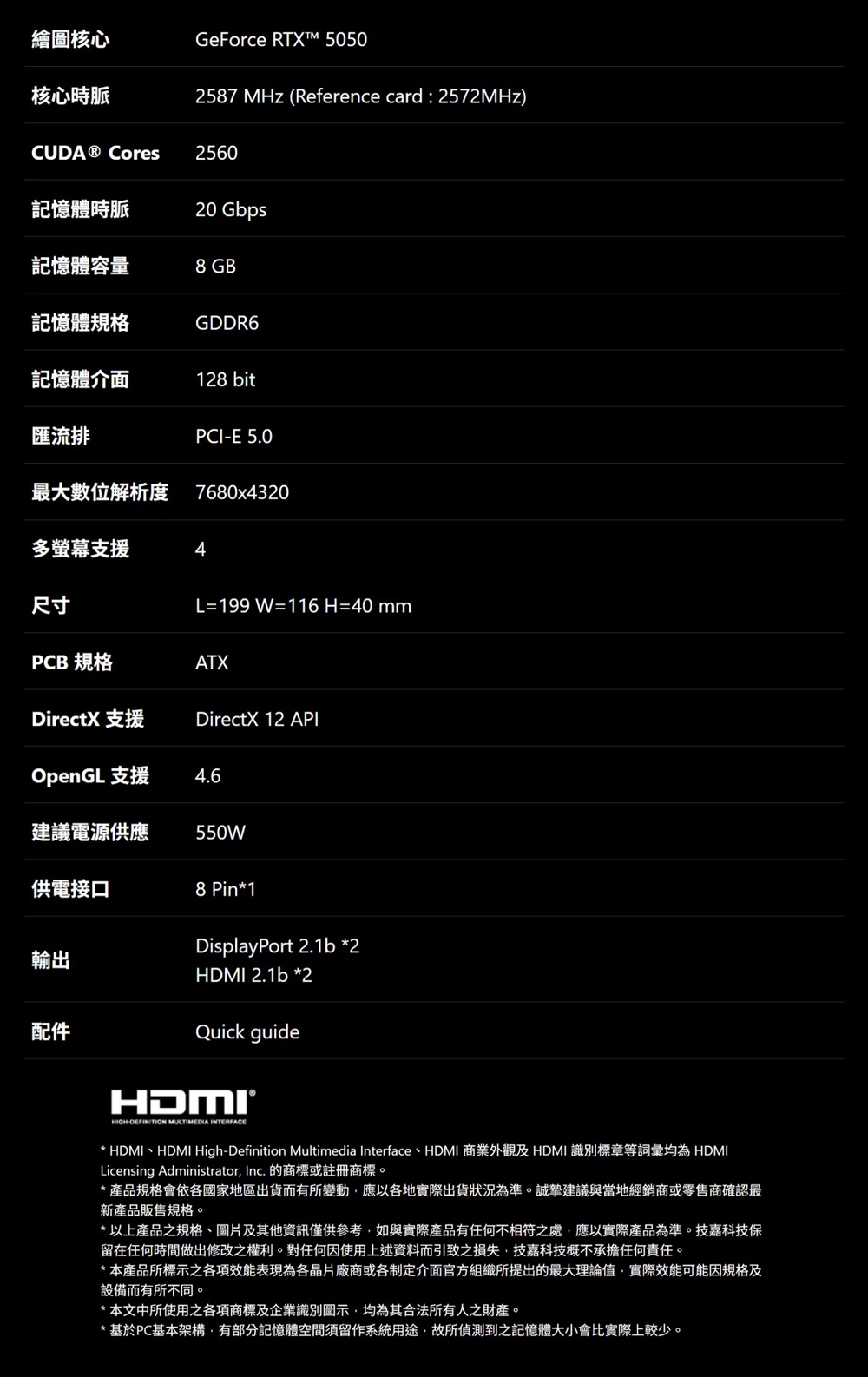 技嘉 GIGABYTE GeForce RTX 5050 WINDFORCE OC 8G 顯示卡/092225