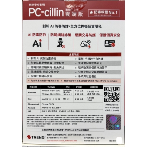 PC-cillin 2026 雲端版 1台1年