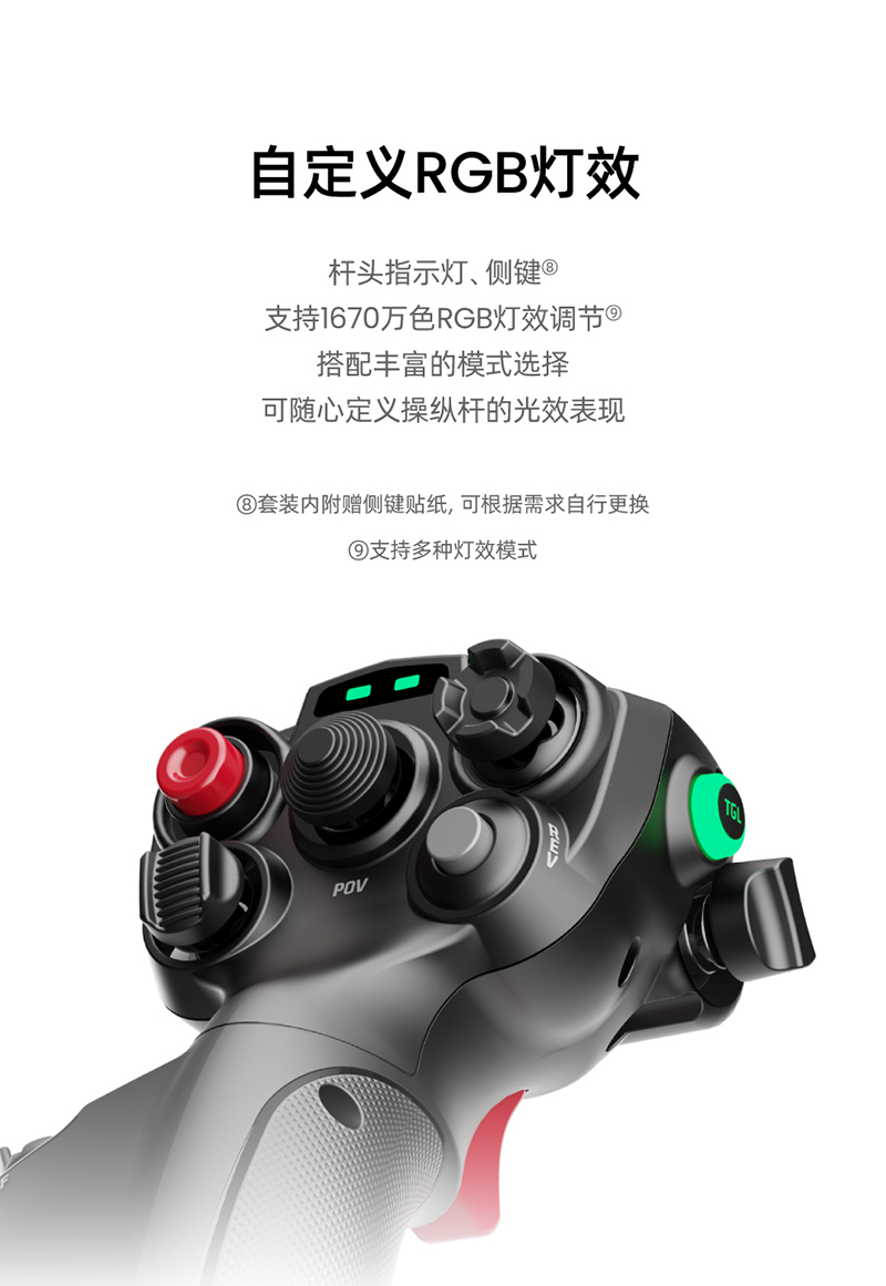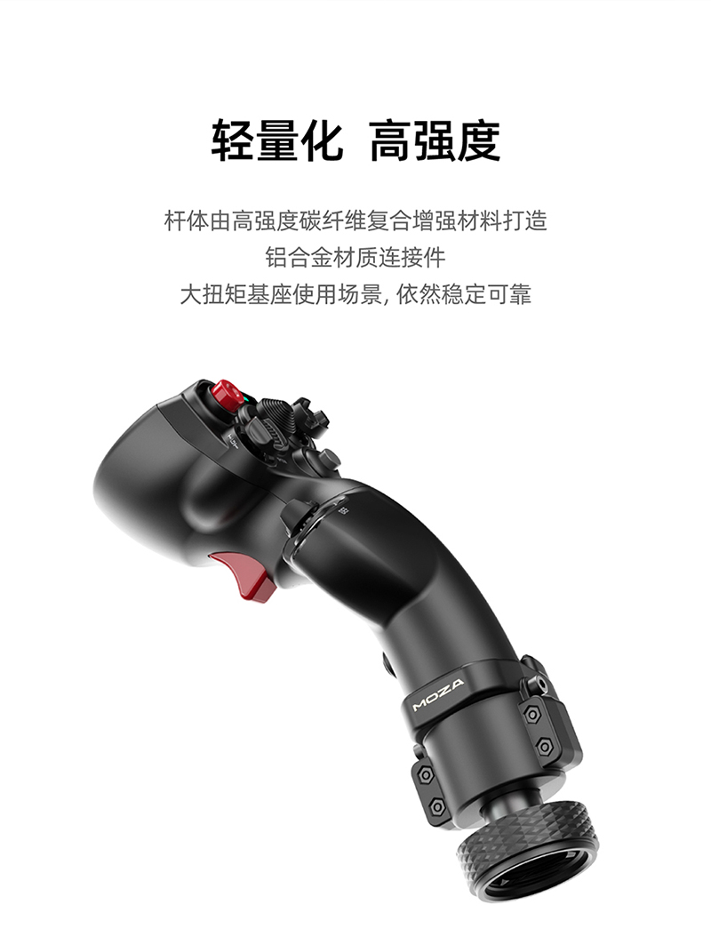 太空船和戰鬥機風格的設計 MHG 握把的設計靈感源自太空船和戰鬥機的操控系統,可在各種飛行場景中提供高度直覺和沈浸式的操控體驗。