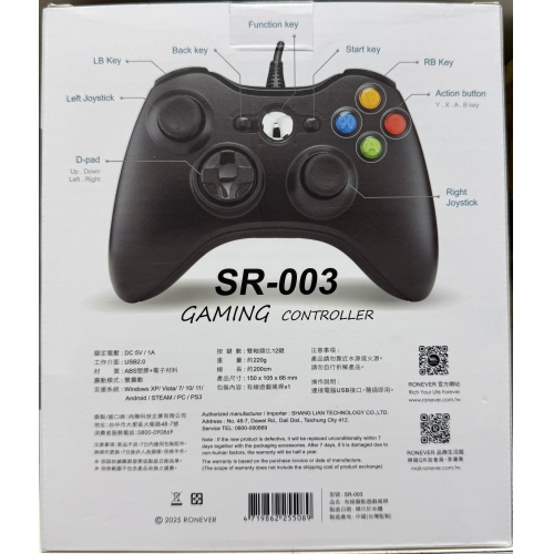 "全新現貨" SR-003 有線震動遊戲搖桿 支援 PC PS3