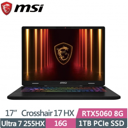 MSI 微星 17吋 Ultra 7 255HX RTX5060 AI電競筆電(Crosshair 17 HX AI/16G/1TB SSD/W11/D2XWFKG-010TW)