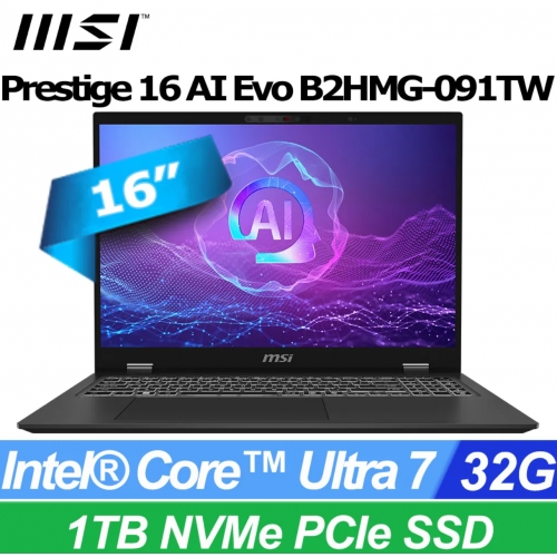 MSI 微星Prestige 16 AI Evo 16吋 AI筆電黑色(Intel Core Ultra 7 255H/32GB/1TB/WIN11P/B2HMG-091TW)