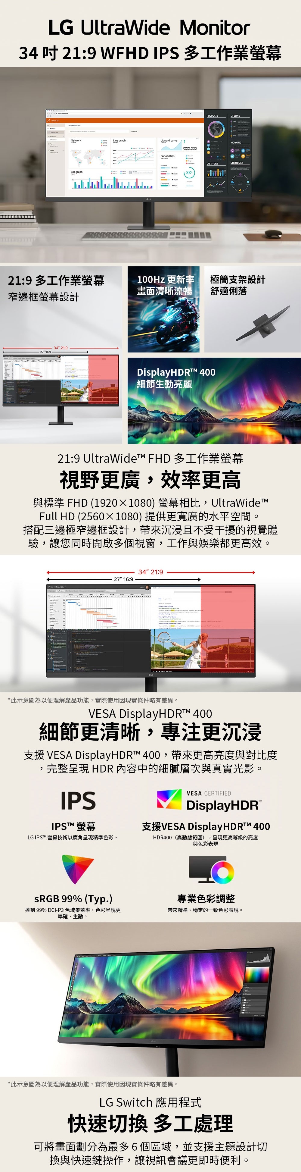 LG 樂金 UltraWide Monitor 34U511A-B IPS多工作業螢幕 21:9 /013026