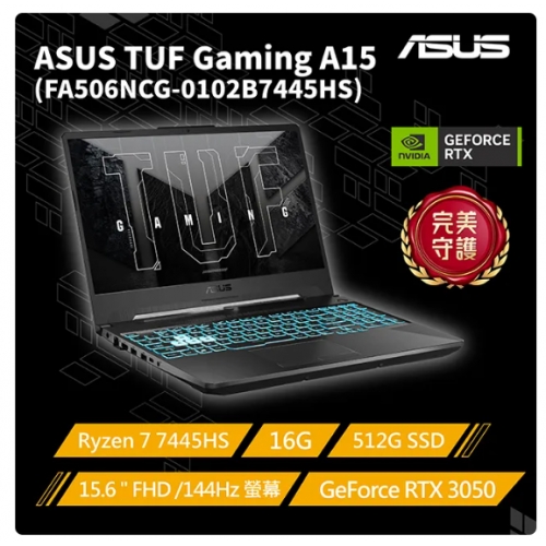 ASUS TUF華碩 15.6吋 R7 RTX3050電競筆電(FA506NCG-0102B7445HS/R7-7445HS/16G/512G SSD/W11)