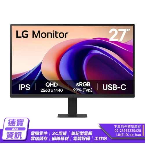 LG 27U631A-B 27吋 QHD IPS 護眼螢幕 2K/100Hz/5ms/USB-C 15W/閱讀螢幕/030826