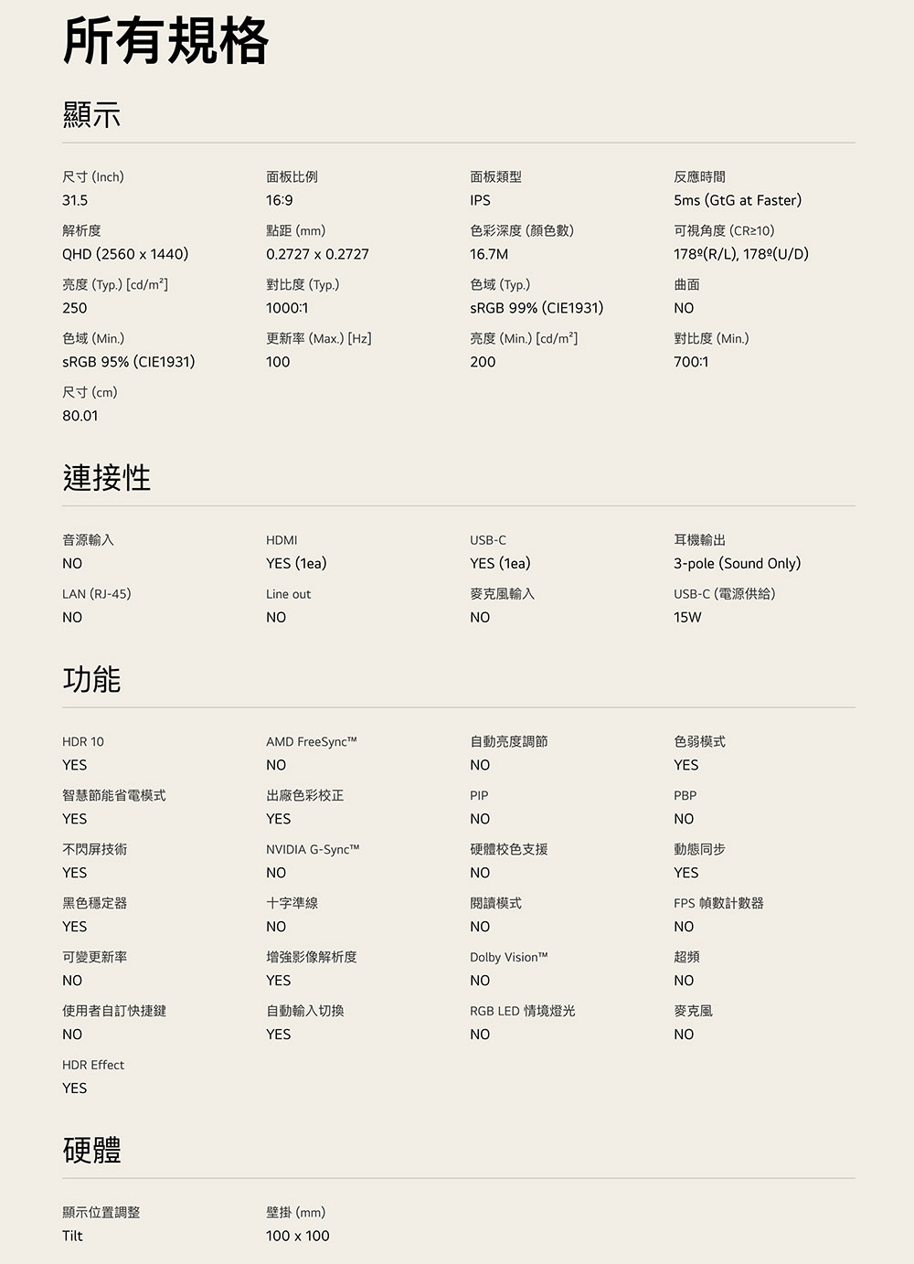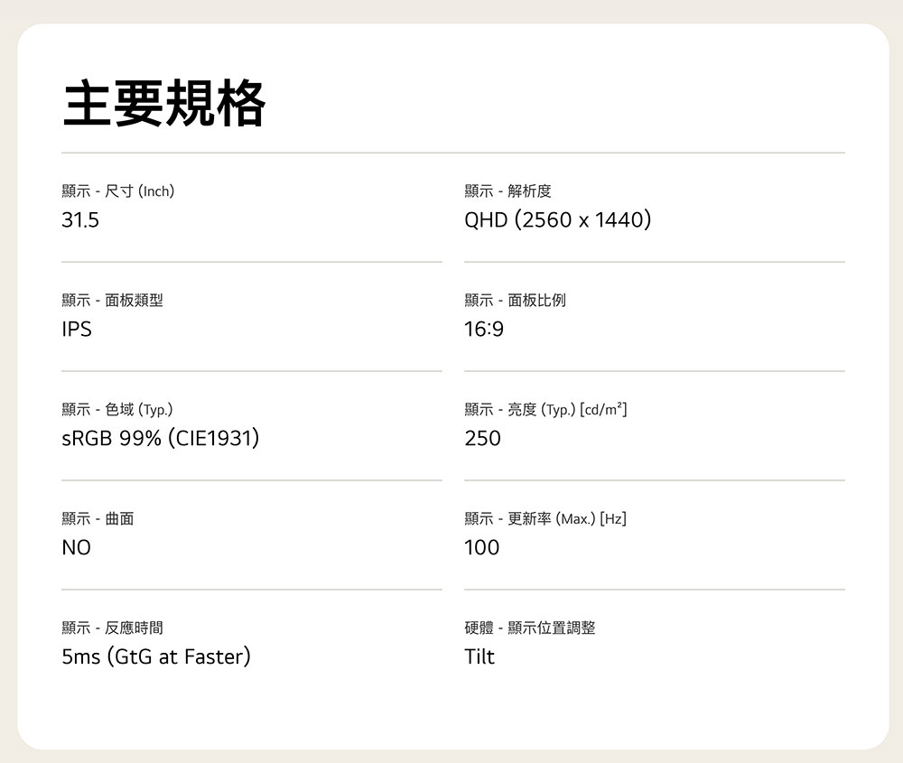 LG 樂金 32型 QHD 100Hz IPS 護眼螢幕 (支援USB-C)/030826