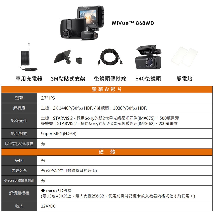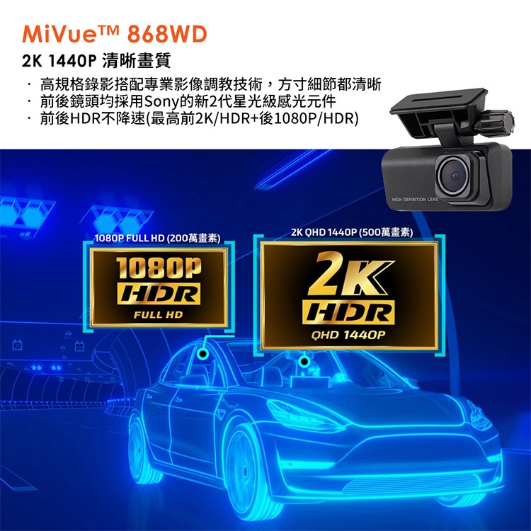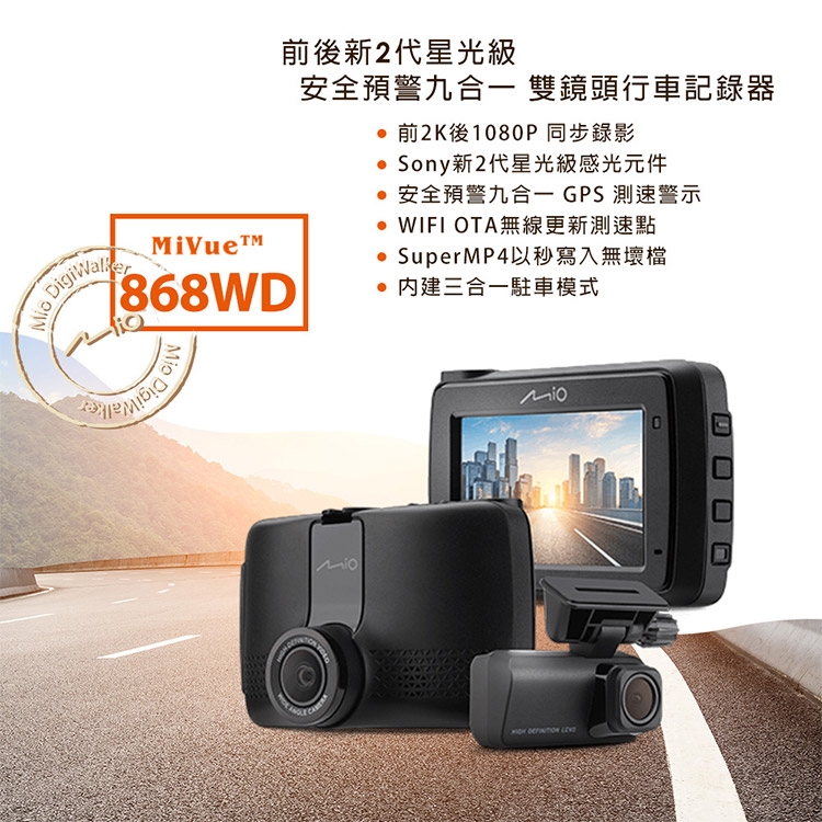Mio MiVue 868WD 2K+1080p 雙鏡頭行車記錄器 2代星光級 安全預警九合一 行車記錄器/031426