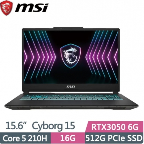 MSI 微星Cyborg 15 A2RUDX-2288TW(Core 5 210H/16G/512G SSD/RTX3050 6G/15.6吋FHD/W11)電競筆電