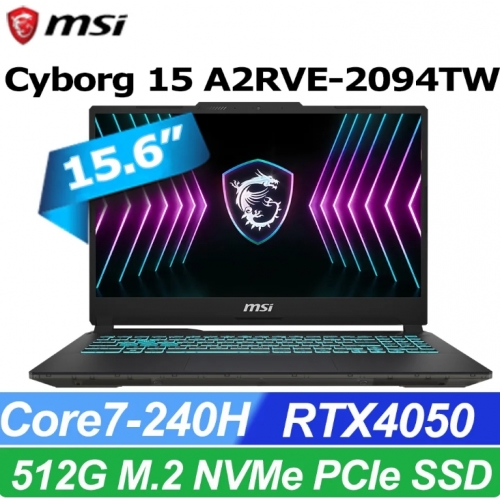 MSI 微星Cyborg 15 15.6吋 電競筆電黑色(C7-240H/16G/512GB SSD/RTX4050-6G/W11/ A2RVE-2094TW)