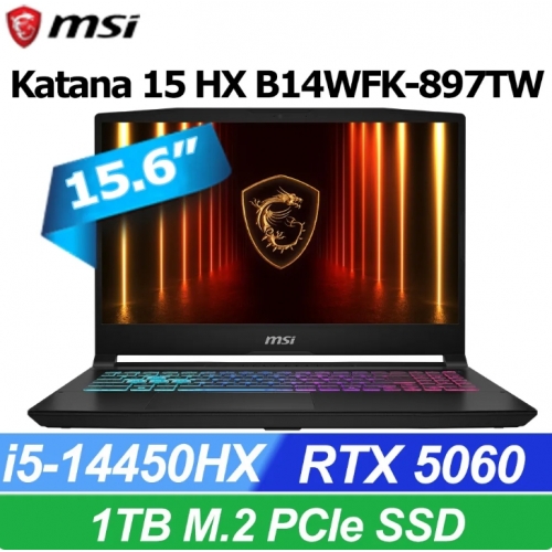 MSI 微星Katana 15 HX 15.6吋 電競筆電黑色(i5-14450HX/16GB/1TB SSD/RTX5060-8G/WIN11/B14WFK-897TW)