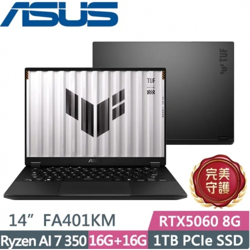 ASUS 華碩TUF Gaming A14 FA401KM-0021A350H 御鐵灰(Ryzen AI 7 350/16G+16G/1TB/RTX5060/14吋2.5K/W11)電競筆電
