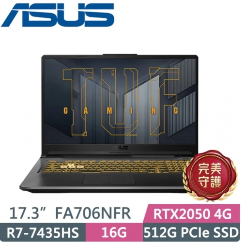 ASUS 華碩TUF Gaming A17 FA706NFR-0042B7435HS 石墨黑(R7-7435HS/16G/512G/RTX2050 4G/17.3吋FHD/W11)電競筆電