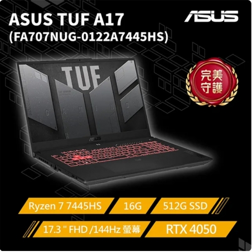 ASUS ROG 華碩TUF Gaming A17 17.3吋電競筆電灰色(Ryzen 7 7445HS/16G/512G/RTX4050-6G/WIN11/FA707NUG-0122A7445HS)