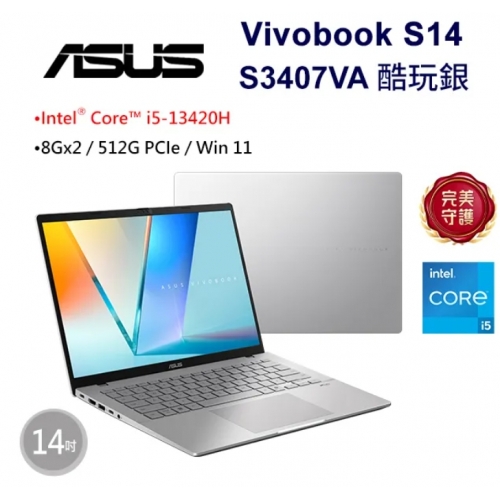 ASUS 華碩Vivobook S14 S3407VA-0062S13420H 酷玩銀(i5-13420H/8Gx2/512G/W11/WUXGA/14)