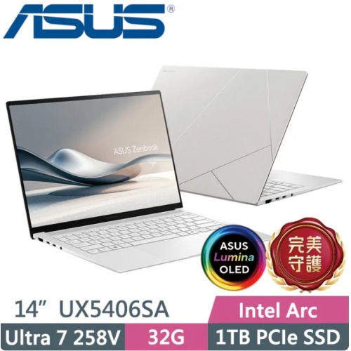 ASUS 華碩Zenbook S 14 OLED UX5406SA-0022W258V(Ultra 7 258V/32G/1TB/14吋OLED/W11)AI效能筆電