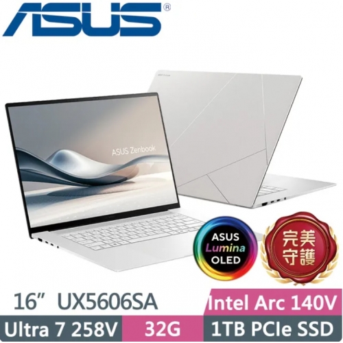 ASUS 華碩Zenbook S 16 OLED UX5606SA-0062W258V 暖煦白(Ultra 7 258V/32G/1TB/16吋3K/W11)AI效能筆電