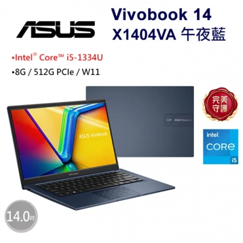 處理器:Intel® Core™ i5-1334U 10核心/12緒 3.4GHz 超頻 4.6GHz / 12 M Cache 顯示卡:Intel Iris Xᵉ Graphics 記憶體:8GB DDR4 on board / 共1個插槽,已經使用0個,最高支援16G SSD硬碟:512GB M.2 NVMe™ PCIe® 4.0 SSD / 共1個插槽,已經使用1個 傳統硬碟:無 / 不可擴充 螢幕:14吋 FHD (1920 x 1200) 16:9 aspect ratio 光碟機:NO 作業系統:Windows 11 64Bits 英/泰/簡中/印尼/越南/繁中 無線規格:Wi-Fi 6E (802.11ax) + Bluetooth 5.3 網路攝影機:720p HD camera With privacy shutter IO 介面: 1x USB 2.0 Type-A 1x USB 3.2 Gen 1 Type-C 2x USB 3.2 Gen 1 Type-A 1x HDMI 1.4 1x DC-in 尺寸:31.71 x 22.20 x 1.99 ~ 1.99 cm 重量:1.40 kg 電池:42WHrs, 3S1P, 3-cell Li-ion 變壓器:ø4.5, 45W AC Adapter, Output: 19V DC, 2.37A, 45W, Input: 100~240V AC 50/60Hz universal 保固:二年國際保固 / 首年完美保固 / LCD無亮點保固 / 電池保固一年 備註:以上規格僅供參考,如有任何問題,請依原廠公告為主 備註:此機型沒有附贈包包、滑鼠 加入會員 再延長保固兩個月