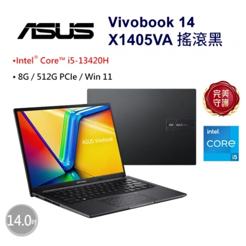 ASUS 華碩Vivobook 14 14吋文書效能筆電黑色(i5-13420H/8GB/512GB/WIN11/X1405VA-0131K13420H)