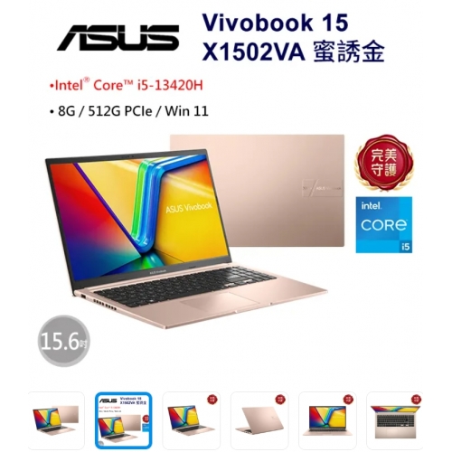 ASUS 華碩Vivobook 15 15.6吋效能筆電金色(i5-13420H/8GB/512GB/WIN11/X1502VA-0191C13420H)