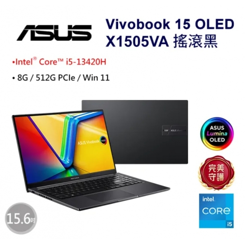 ASUS 華碩Vivobook 15 OLED 15.6吋文書效能OLED筆電黑色(i5-13420H/8GB/512GB/WIN11/X1505VA-0311K13420H)