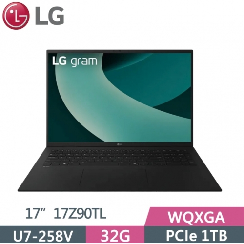 LG 樂金gram 17Z90TL-G.AU88C2 黑(Ultra 7-258V/32G/1TB SSD/WQXGA/17/W11)