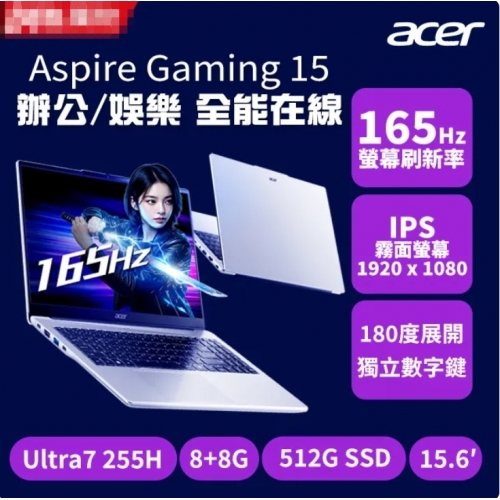 ACER 宏碁Aspire Gaming 15.6吋Ultra7 Arc效能筆電 銀(Ultra7 255H/16G/Intel Arc/ 512G/W11/AGM15-71P-710D)