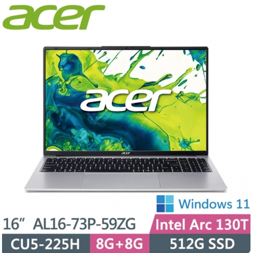 ACER 宏碁AspireLite AL16-73P-59ZG 銀(CU5-225H/8G+8G/512G SSD/W11/WUXGA/16)效能筆電