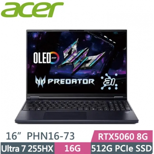 ACER PredatorPredator Helios Neo PHN16-73-71BP 黑(Ultra 7 255HX/16G/512G/RTX5060 8G/16吋WQXGA/W11)電競筆電