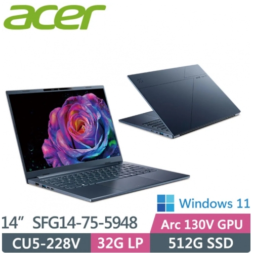 ACER 宏碁Swift Go SFG14-75-5948 藍色(CU5-228V/32G/512G/W11/WUXGA/OLED)14吋AI效能筆電