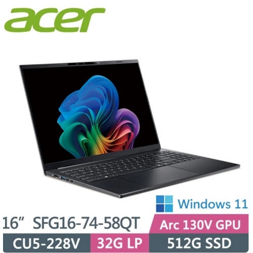 ACER 宏碁Swift Go SFG16-74-58QT 黑色(CU5-228V/32G/512G/W11/WUXGA/OLED)16吋AI效能筆電
