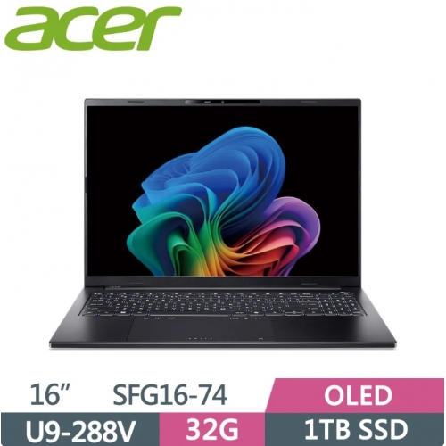ACER 宏碁Swift Go SFG16-74-91FX 16吋 AI筆電 黑(Ultra9 288V/32G/1TB SSD/W11)