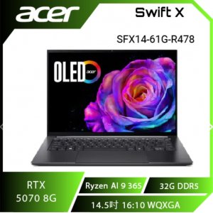 acer SwiftX SFX14-61G-R478 灰 宏碁輕量強效筆電/Ryzen AI 9 365/RTX5070 8G/32GB LPDDR5X/1TB PCIe/14.5吋 16:10 2.8K 120Hz OLED/W11/