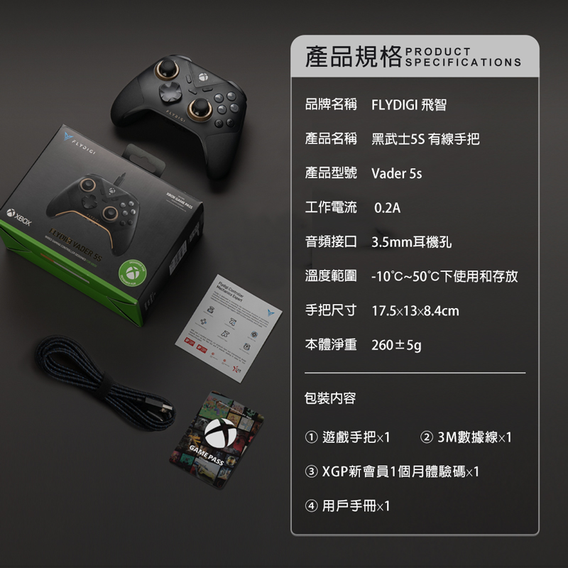"全新現貨" FLYDIGI 飛智 黑武士5S 有線手把 Xbox授權 送XGP1個月