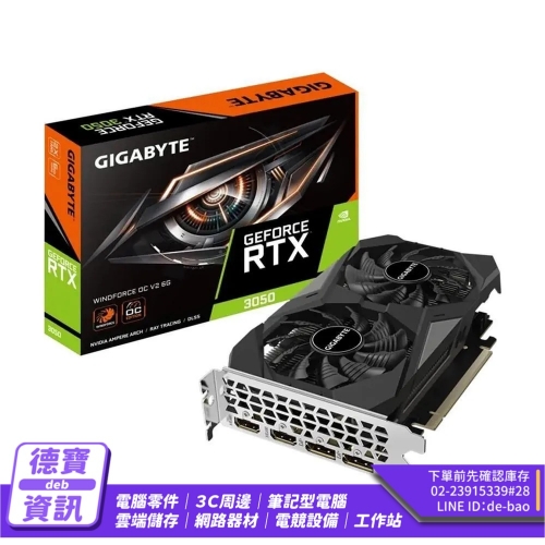 GIGABYTE 技嘉RTX 3050 WINDFORCE OC V2 6G 顯示卡 (GV-N3050WF2OCV2-6GD)/042326