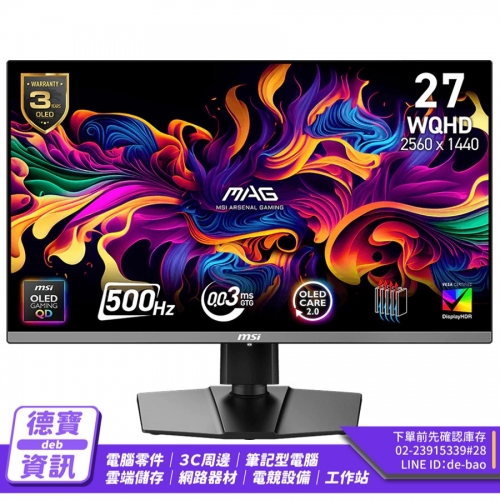 MSI 微星 MAG 272QP QD-OLED X50【26.5吋】螢幕/2K/500Hz/042726